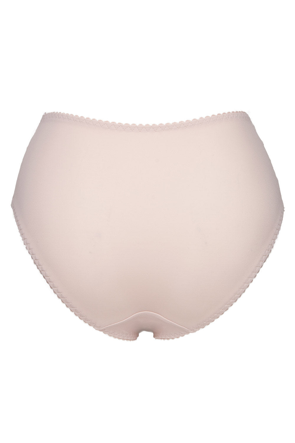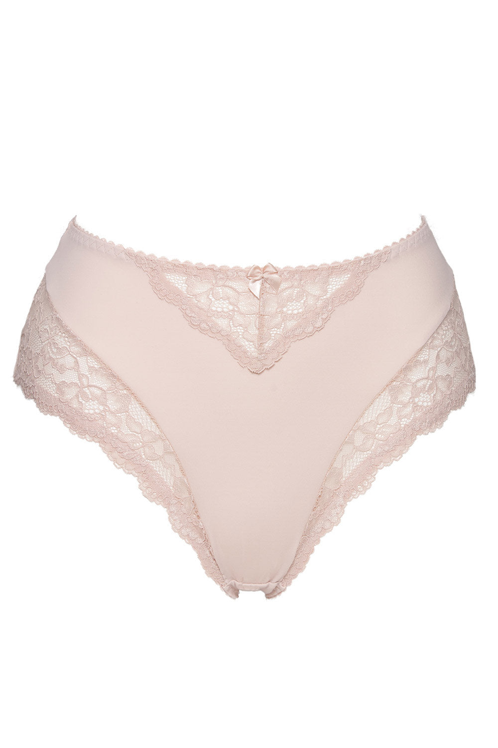 High Midi pant in soft fabric and lace. Visually light and delicate with a feminine cut and big lace areas. Stays in place and feels comfortable all day. In a soft powder colour that is almost invisible under white clothing.