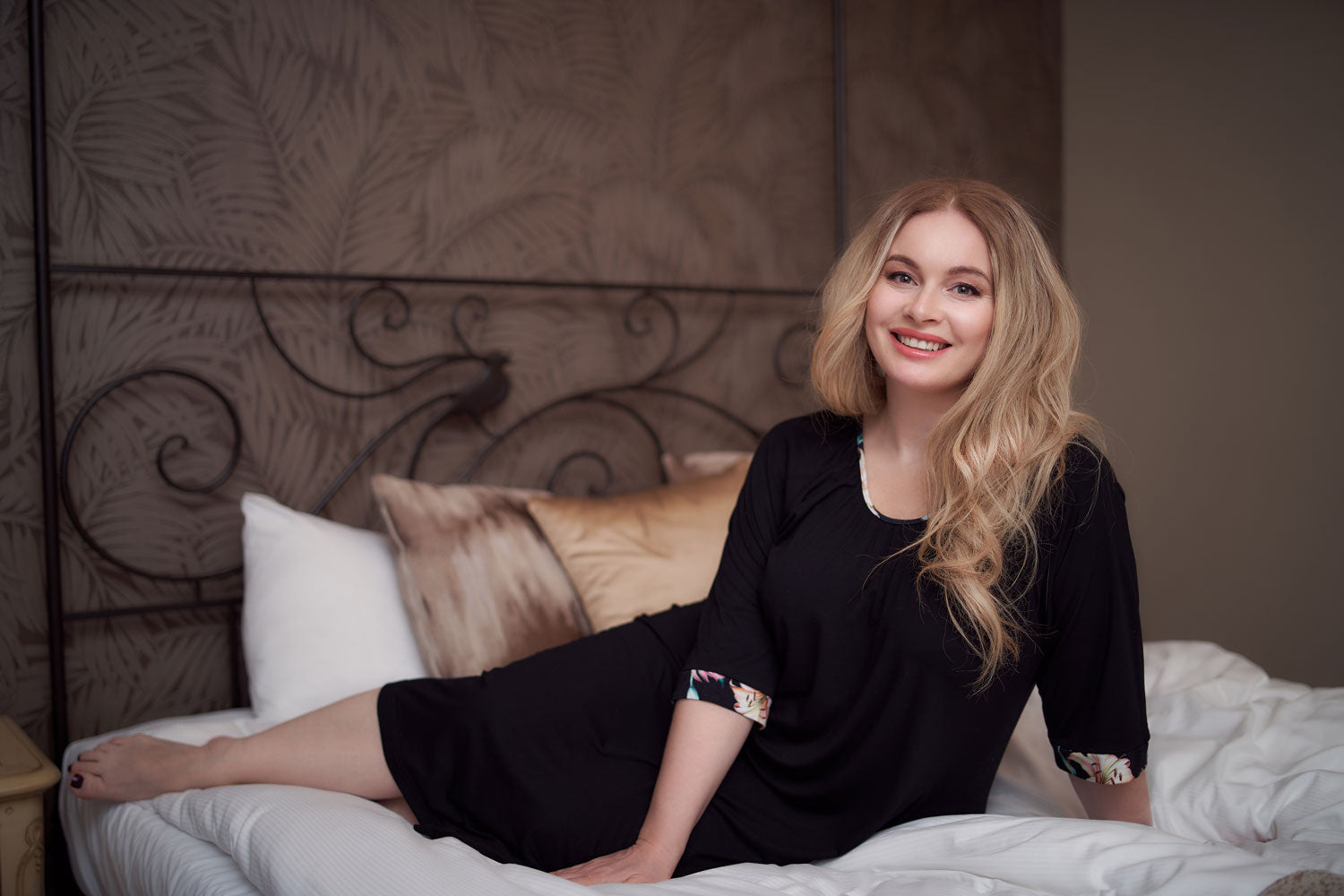 Nightdress, Bamboo, 3/4 Sleeves Black